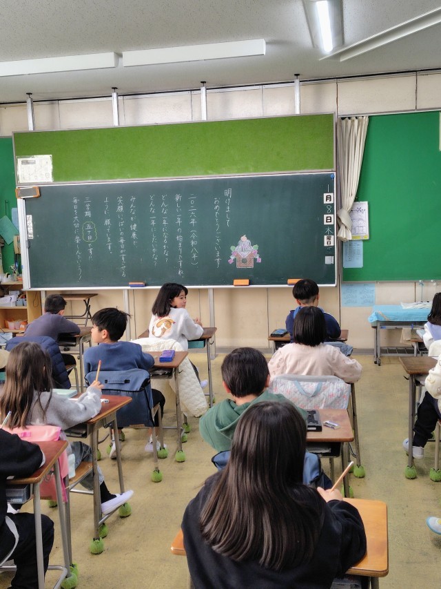黒板には先生からのメッセージ。「三学期、50日です!毎日を大切に、楽しんでいこう!」・・・本当にそうですね!