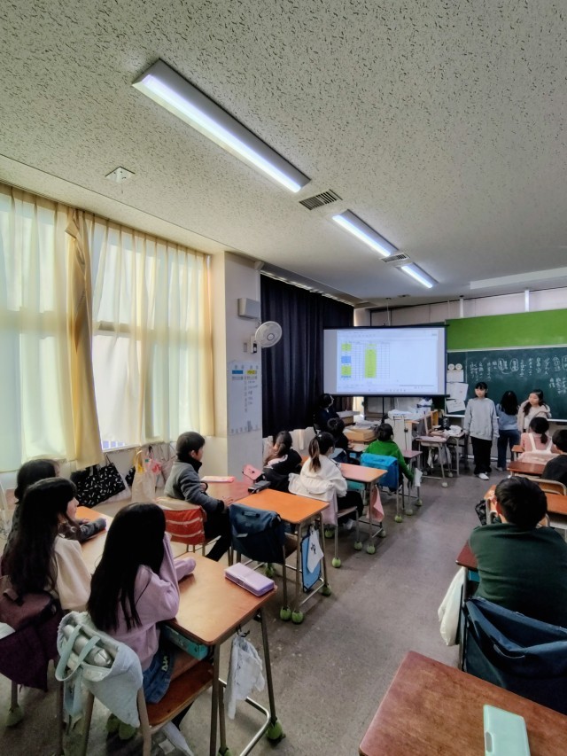 (先生はみんなの話し合いの様子を見守って、ところどころでアドバイスしています)
