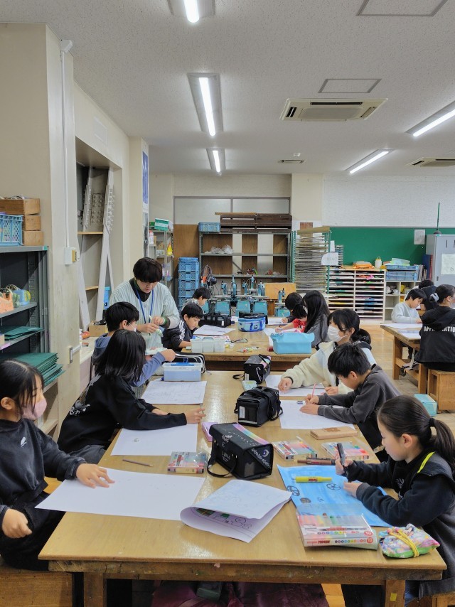 「あったらいい町、どんな町」を描いていきます。行ってみたい町、住んでみたい町を自由に想像して絵に表していきます。