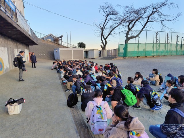 今日は4年生の社会科見学です。中央高速の渋滞が予想されるので、朝早くに集合しました。他の学年はまだ登校していません。東京湾の中央防波堤埋め立て処分場、東京タワーを見学します。