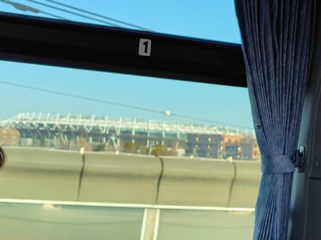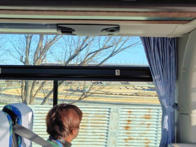 (先生のガイドを聞きながら車窓からも見学します。東京競馬場に味の素スタジアム・・・)