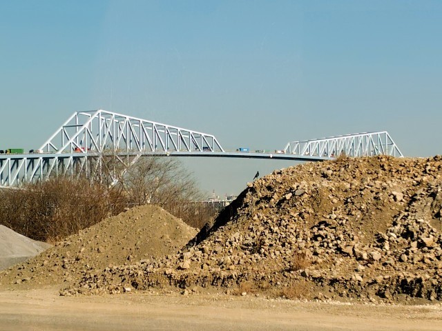 (ごみと土を交互に埋め立てるサンドイッチ工法。汚れた水が海に流れ出ないように集めて溜めておく集水池)