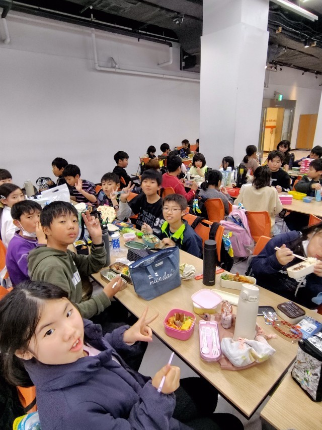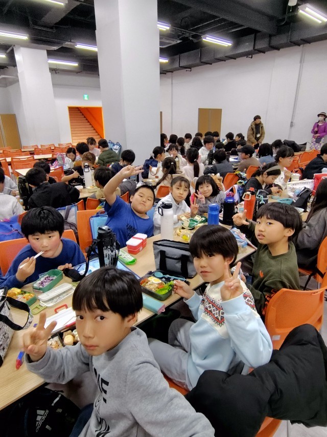 (東京タワーの地下には大きなホールがあります。展望台での見学を終えて、こちらでお弁当タイムといたします)