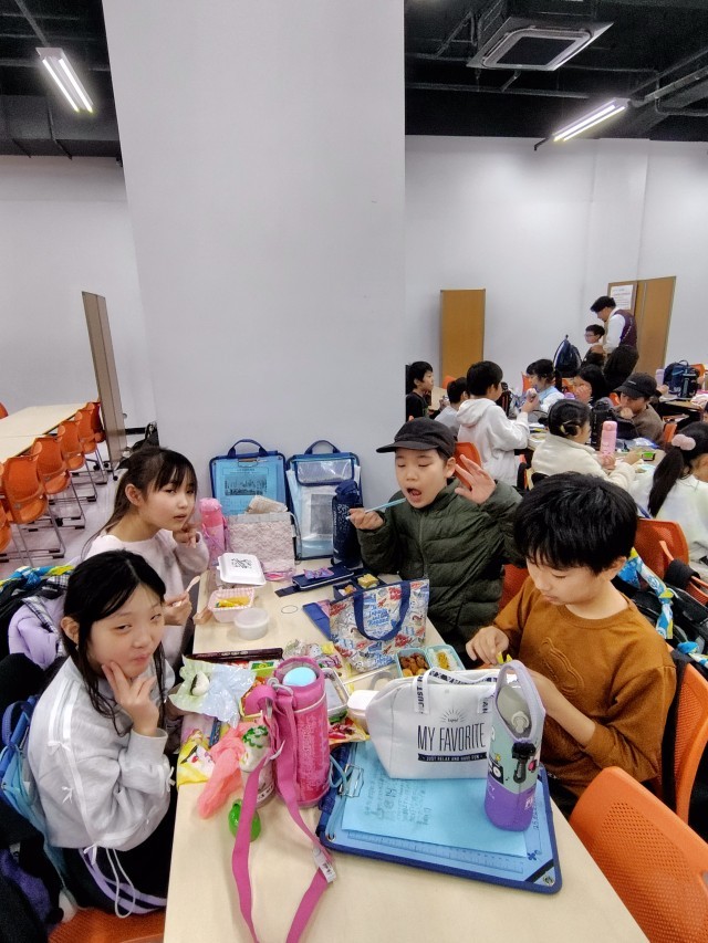 (「今日、学校の給食なに?」「スパゲッティミートソース!」「えー!!」という子どもたちの会話。「でも今日は好きなお弁当だから、まあいいや」だそうです)