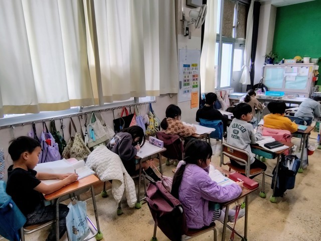 (今日は発表するための原稿づくりのようです。机の上には1枚の大きな紙)
