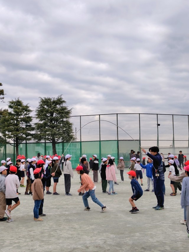(さあ3分間でどのくらい跳べるかな。連続回数ではなく合計回数なので、長縄が苦手でも大丈夫です)