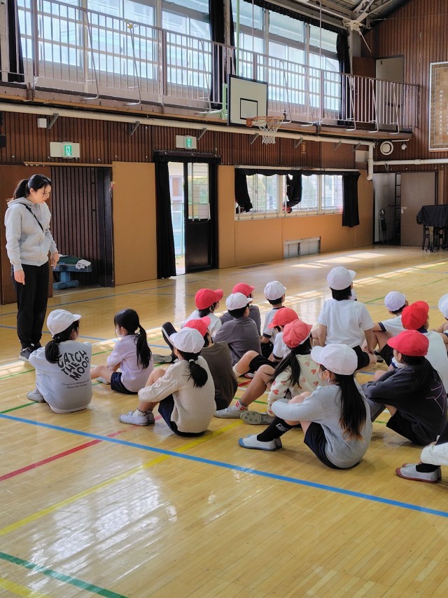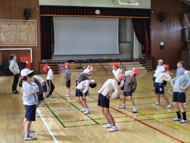 体育館で跳び箱運動の学習です。「台上前転」の学習も後半に入りました。空調設備のおかげか、それほど寒くありません。
