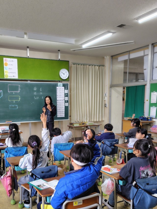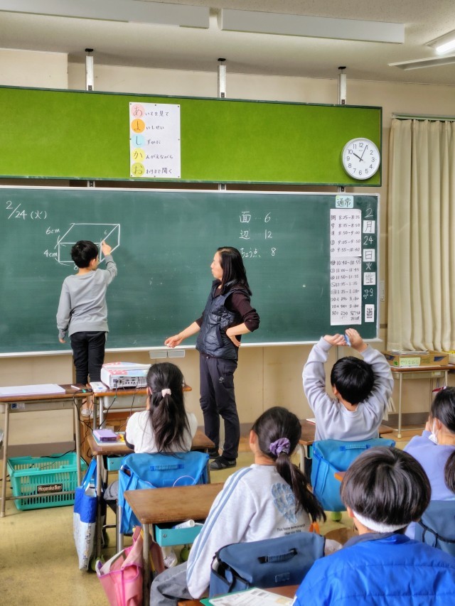 (はこの形には面がいくつあるのかな?辺や頂点の数はいくつかな?)