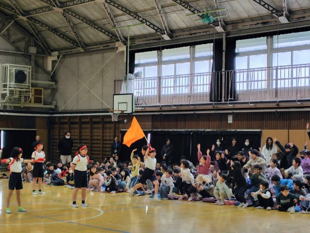 (4年生のフラッグで会場にウェーブが起こります)