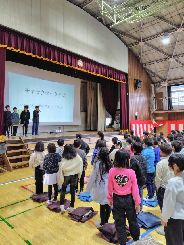 今年度の集会もこの日が最後になりました。集会委員会がクイズ集会を企画してくれました。楽しいクイズに体育館の中はたいへんに盛り上がりました。