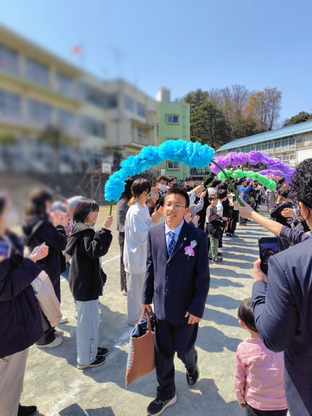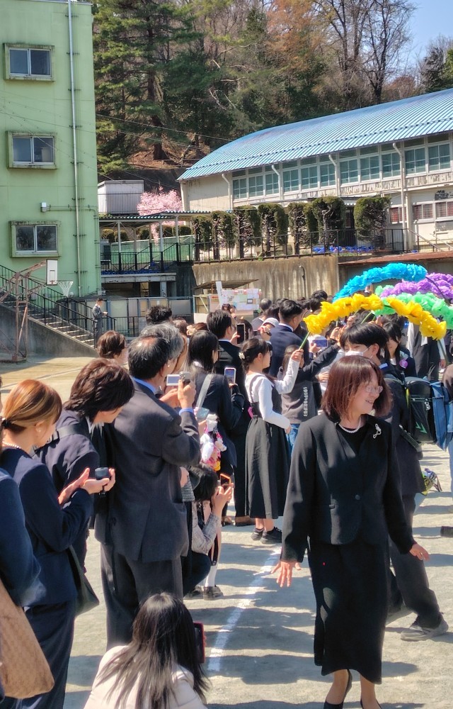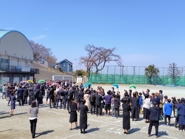 (温かい晴天の校庭で「門出送り」が始まります。ここからは連続写真で紹介いたします)