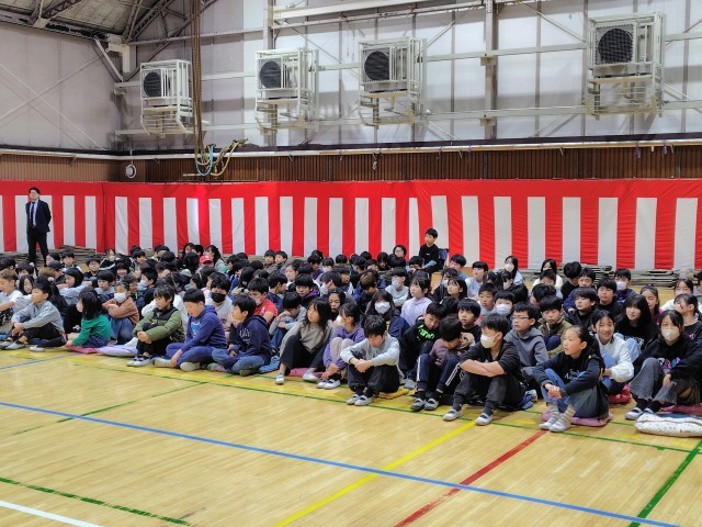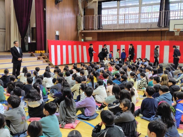 体育館で修了式を行います。全校児童が集まりましたが、昨日卒業式を終えた6年生たちはもういません。やっぱりさみしい思いがします。