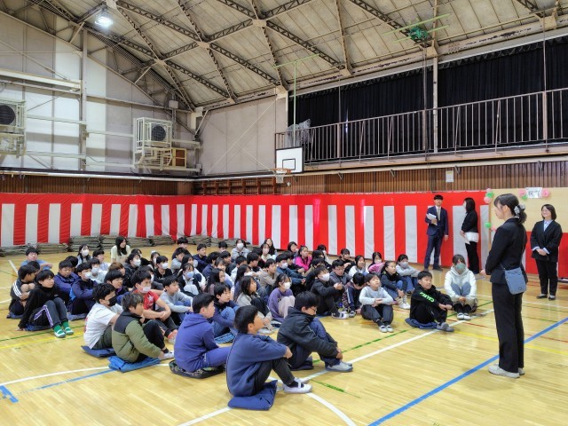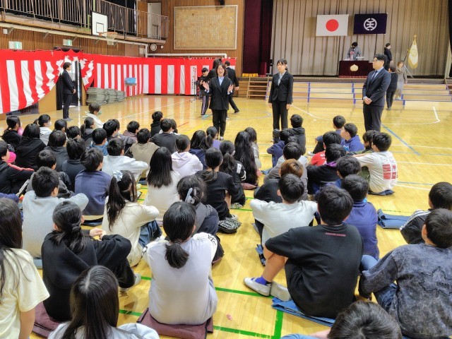 (修了式が終わったあとで、6年生の先生たちから5年生へお礼の言葉が伝えられました。5年生のみなさん、練習から本番まで、卒業式がんばりましたね)