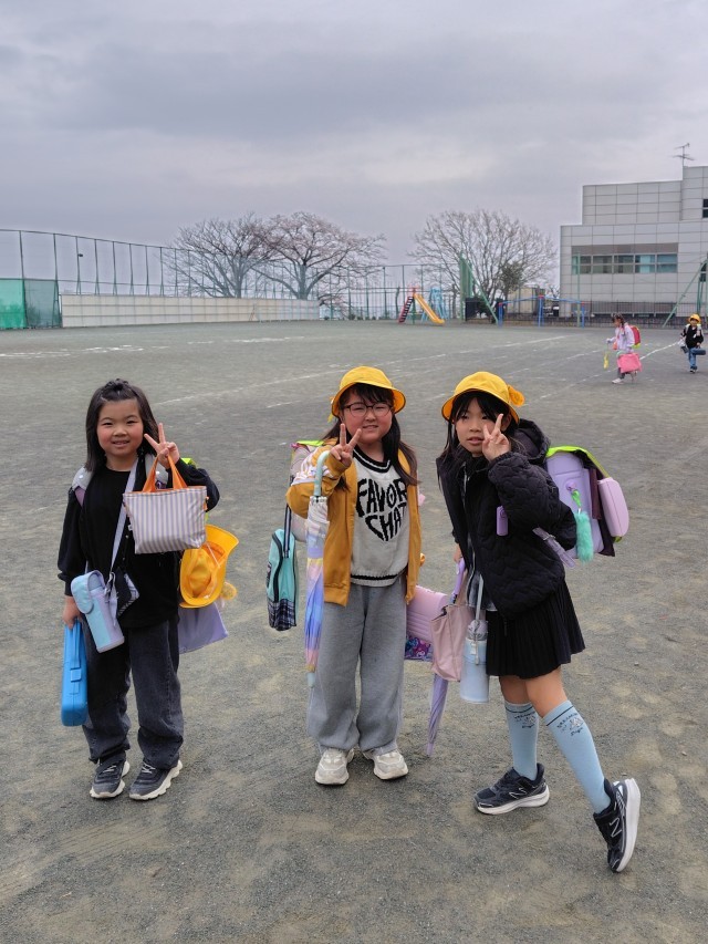 下校時刻となりました。荷物を抱えて子どもたちが昇降口から出てきます。「さよーならー!」「ホームページに載るの?」「校長先生ー!写真撮ってー!」と言ってくれます。