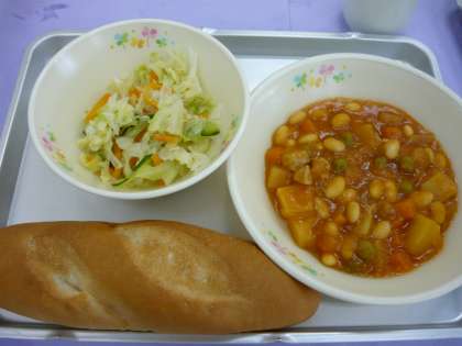 今日の給食の『イタリアンサラダ』は、レモン果汁を使用したドレッシングを和えて食べます。小宮小学校のサラダドレッシングは、すりおろし玉葱が入った醤油味のものが多かったのでどんな反応か少し心配でした。思ってたほど抵抗はなく、良く食べてくれていましたが低学年さんには少し酸味が強かったようで他の学年より食べ残しが多かったです。次回は少し酸味を抑えた味にしてみたいと思います。