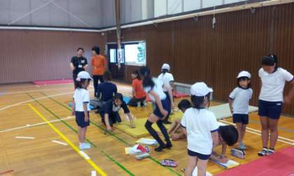 さて、子供たちは、異学年で体力テストを協力しながら行っています。6年生は1年生の面倒をみながら、優しく丁寧に一緒に取り組んでいます。5年生は2年生と、4年生は3年生と組んで協力しながら実施しました。また、今年も、保護者の方にはボランティアで、お手伝いをしていただき、ありがとうございました。