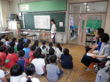 お母様のボランティアの方々がお話会を行ってくださいました。『みどりのカーテンをつくろう』、『うそ』、『かっぱ』、『かっぱのかっぺいとおおきなきゅうり』、四字熟語クイズ、『あのときすきになったよ』を読んでくださり、どれも楽しく、とても深い考えさせられる物語でした。子供達も熱心に聞いていました。