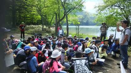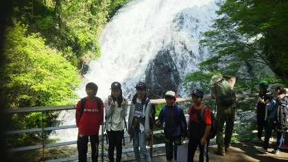2日目のバイキング開始。湯の湖から湯滝に来ました。全員元気です。