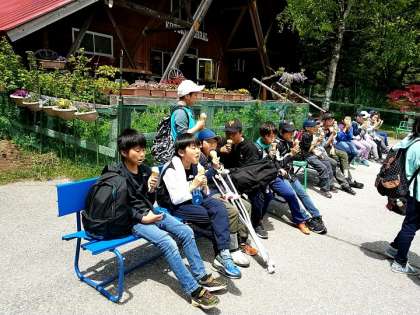 おにぎり弁当を食べた子どもたち。別腹でアイスクリームをいただきました。