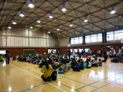 雨でしたので体育館で帰校式を行いました。この準備も小宮小学校の先生たちがしてくれていました。