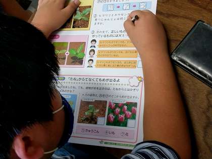 3年生が理科のテストをしていました。子どもたちにとっては、理科という教科も初めてで、さらにテストも初めてということですから、初めて尽くしのテストと言うことになります。