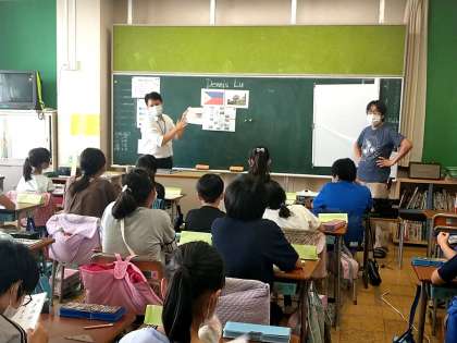 ただ、その自己紹介は全部英語で話していたので、子どもたちは???となっていましたが、友達同士で、「今のは、食べ物のことだよ。」と教え合っていました(^^)。いい仲間ですね!