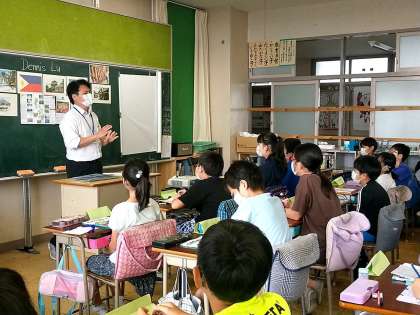 6年生は、外国語科の授業をしていました。今年から新しい英語の先生が来てくれました。