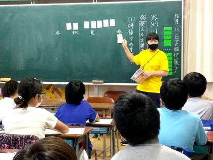 6年生の1つのクラスでは、国語の「川とノリオ」の学習の中で、時節の言葉の学習をしていました。「川とノリオ」の中に出てくる早春という時節の言葉から、いろいろな時節の言葉の意味を考えました。早春、お盆、大寒などです。