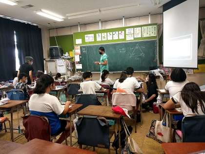 今の5年生の算数は、図形の学習です。今日は三角形の内角の和が180度であることを利用して、分度器を使わないで、角度を求めようというめあてでした。