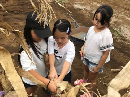 本日の6校時、井上さんの畑でとうもろこしの収穫を行いました。本来であれば4月に種蒔きから始める学習ですが、残念ながら今年は収穫のみとなってしまいました。そのような状況でしたが、子供たちは意欲的に収穫に取り組み、「これがポップコーンになるの?」、「これカッチカチ!すごくかたいよ。」、「でも、においは、いいね。」など実際に触れてみて、たくさんのことに気付くことができました。本日、収穫したとうもろこしを持ち帰っています。是非、ご家庭でおいしいポップコーンをお食べください。