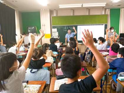 小学校の外国語科は、中学校のようなかっちりとした文法ではなく、コミュニケーションを取りながら、文法を取り入れていきます。