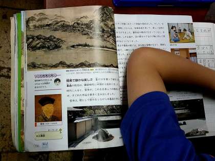 室町時代と言えば、芸術文化の点で今でも息づいている多くの日本文化が生まれた時代です。子どもたちも知っている日本文化が次々と登場してくるので、真剣に教科書を読んでいました。