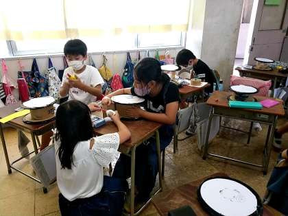 今日、1つのクラスでは学級活動として、運動会で表現する「エイサー」の太鼓づくりを行いました。