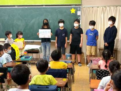 今日の集会は、環境整備委員会の発表集会でした。ただ、コロナの影響で全員が一度に集まれないので、環境整備委員会の人が、手分けして各クラスを回って発表しました。