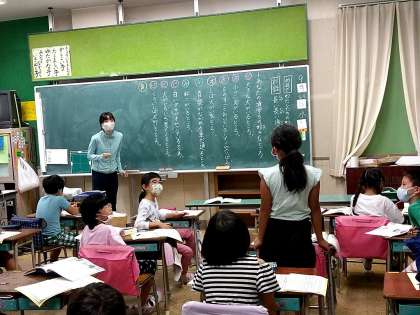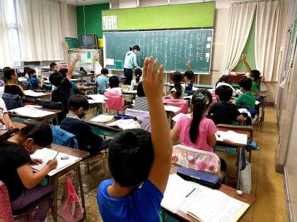2年生の1つのクラスでは、道徳科の授業を行いました。テーマは、「私たちの町や国」です。自分たちが暮らしている町や国を大事にしようという気持ちを育てることを目標としています。