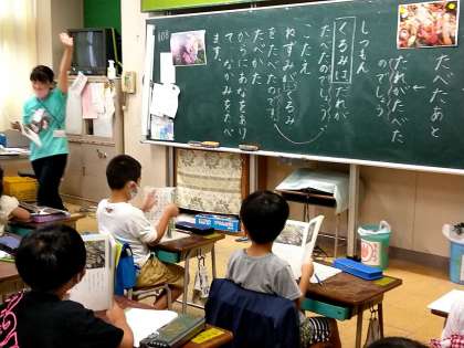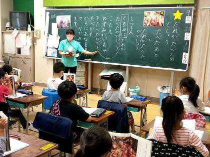1年生の1つのクラスでは、国語で「だれがたべたのでしょう」という説明的な文章の学習に入りました。
