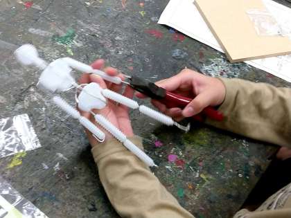 作り方は、まず人の形の芯材を用意し、あらかじめだいたいのポーズを作ります。その上に粘土で肉付けをしていきます。
