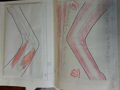 授業では、腕の中の骨のつくりを想像して、絵に書きました。