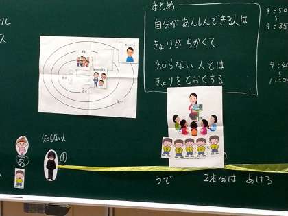 今日の授業は、「人とのきょりかん」(パーソナルスペース)の学習をしていました。このパーソナルスペースを学ぶことは、様々な面から重要です。