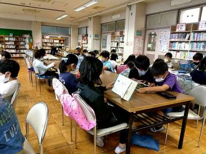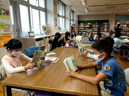 4年生の1つのクラスでは、国語の時間に図書室で読書をしていました。
