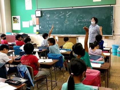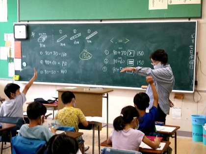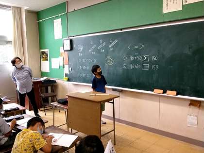 2つのお買い物の結果が150円よりも大きいのか、小さいのか、それとも同じなのか‥。子どもたちは考えて、積極的に手を挙げていました。