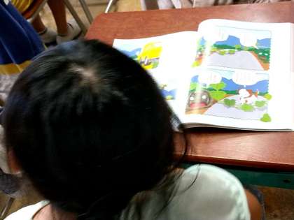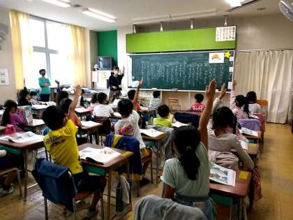 1年生の道徳の授業「かぼちゃのつる」を1つのクラスが学んでいました。