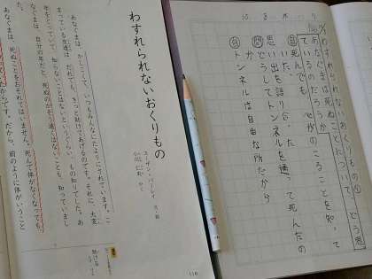 3年生の国語は、物語「わすれられないおくりもの」に入っています。