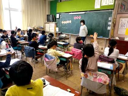 いよいよ、2年生の算数では「かけざん」が始まりました。4つのクラスで一斉に「かけざん1」の授業がスタートしたのです。