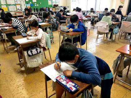 今日の5年生の算数は、「整数」のテストでした。倍数と約数がどのくらい理解できたか、気になるところです。