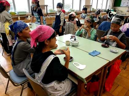 また、家庭科では、昨日お茶を飲んでいる様子をお伝えできませんでしたので、お伝えします。