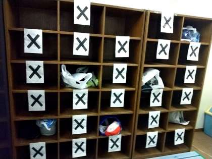 密を避けて脱衣室のロッカーも間隔をとる配慮がされています。
