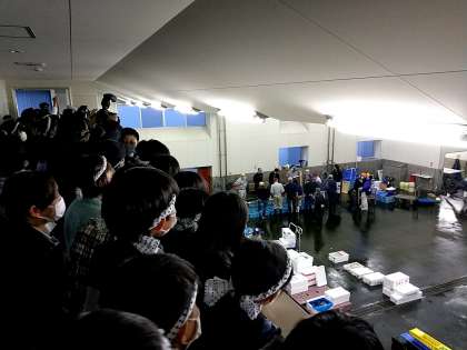 6時30分。せりが始まりました。かん高い鐘の音が響いたかと思ったら、大きなせりの声が次々と聞こえてきました。