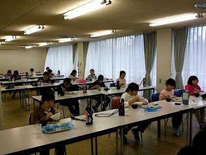 朝食は、前半を男子。後半を女子としました。部屋の片付けと同時並行で行うため、効率的だからです。