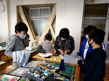 などなど、当初はいろいろな声が聞こえてきましたが、徐々に調子が出てきて、今日はみんな集中して取り組んでいました。持ち手のバンドをつけるところを、すぐに取れないように工夫するところが難しそうでした。